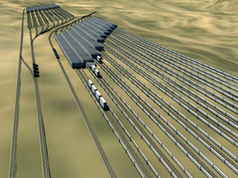 ARES energy storage technology employs a fleet of electric traction drive shuttle-trains. Image: ARES